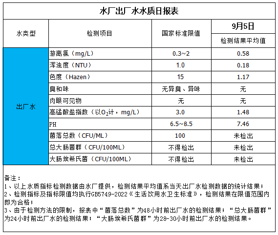 水廠出廠水水質(zhì)日?qǐng)?bào)表(2025-9-5)